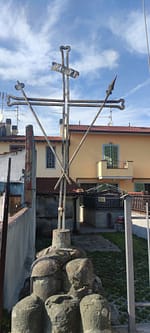 Nascenti da un cippo di pietra o da un basamento in laterizio, i crocifissi che vediamo nei paesi sono tutti in ferro e spesso recano i segni della passione di Cristo: la corona di spine, la lancia, il martello, i chiodi, la scala, il gallo, le tenaglie, ecc.